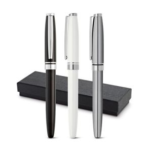 Taglie:Penna a sfera elegante in metallo satinato con torso rettangolare. Consegnato con refill blu.